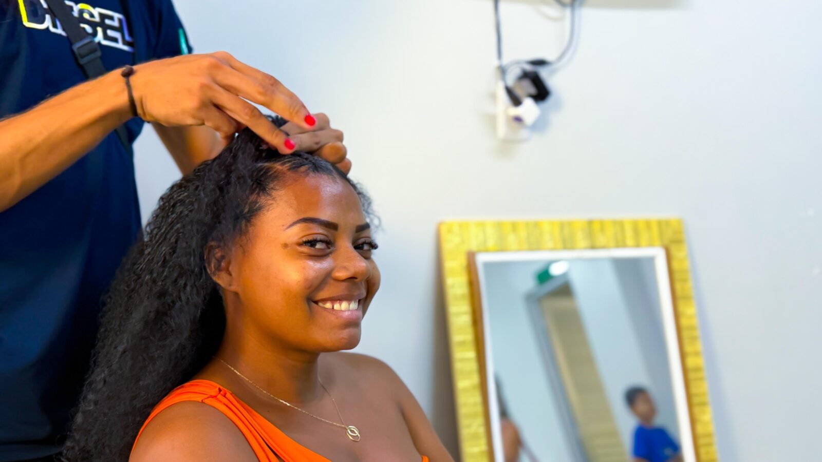 “Eu sempre participo das quartas-feiras, a gente sempre aprende alguma coisa, e hoje tive a oportunidade de fazer essa trança nagô maravilhosa”, declarou Diana Cardoso, moradora da região e paciente da UBS Coração.