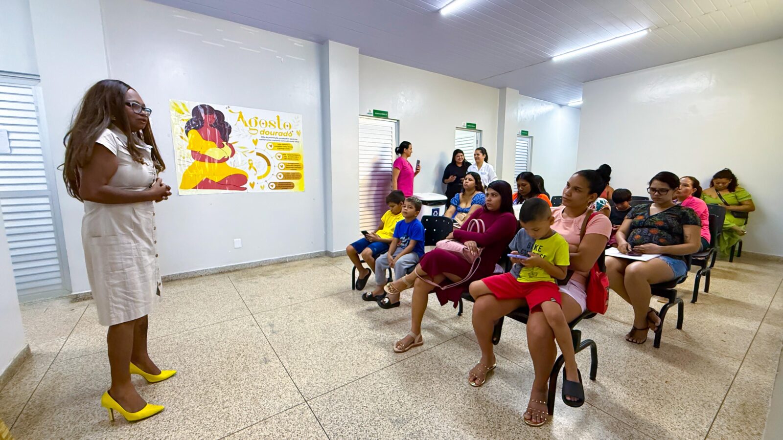 Outra atividade importante durante a manhã foi a palestra sobre aleitamento materno e cuidados com a amamentação, tema central da campanha do Agosto Dourado, desenvolvida em todas as UBS do município ao longo do mês.