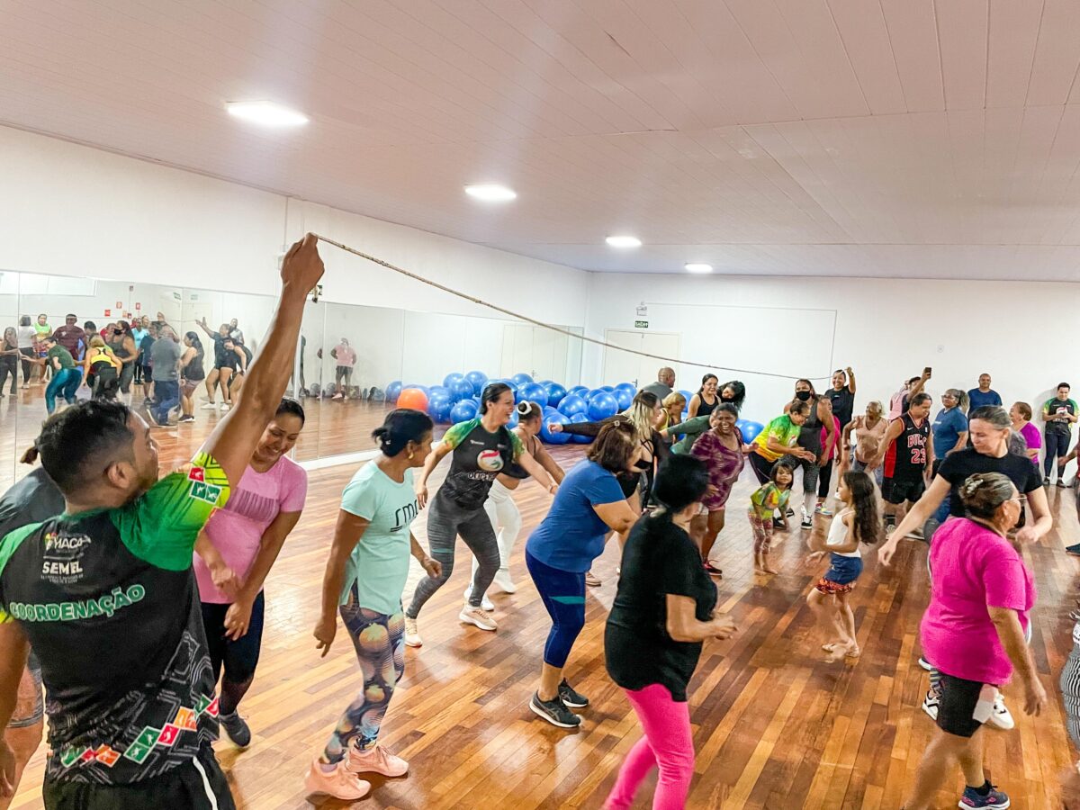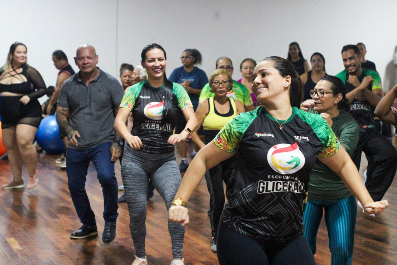 Nesta sexta-feira (9), as mães dos alunos dos projetos esportivos da Escolinha Glicério Marques participaram de uma animada aula de zumba promovida pela Secretaria de Esporte e Lazer (Semel). A iniciativa, em homenagem ao Dia das Mães, comemorado neste domingo, proporcionou uma noite de celebração, bem-estar e muita diversão.