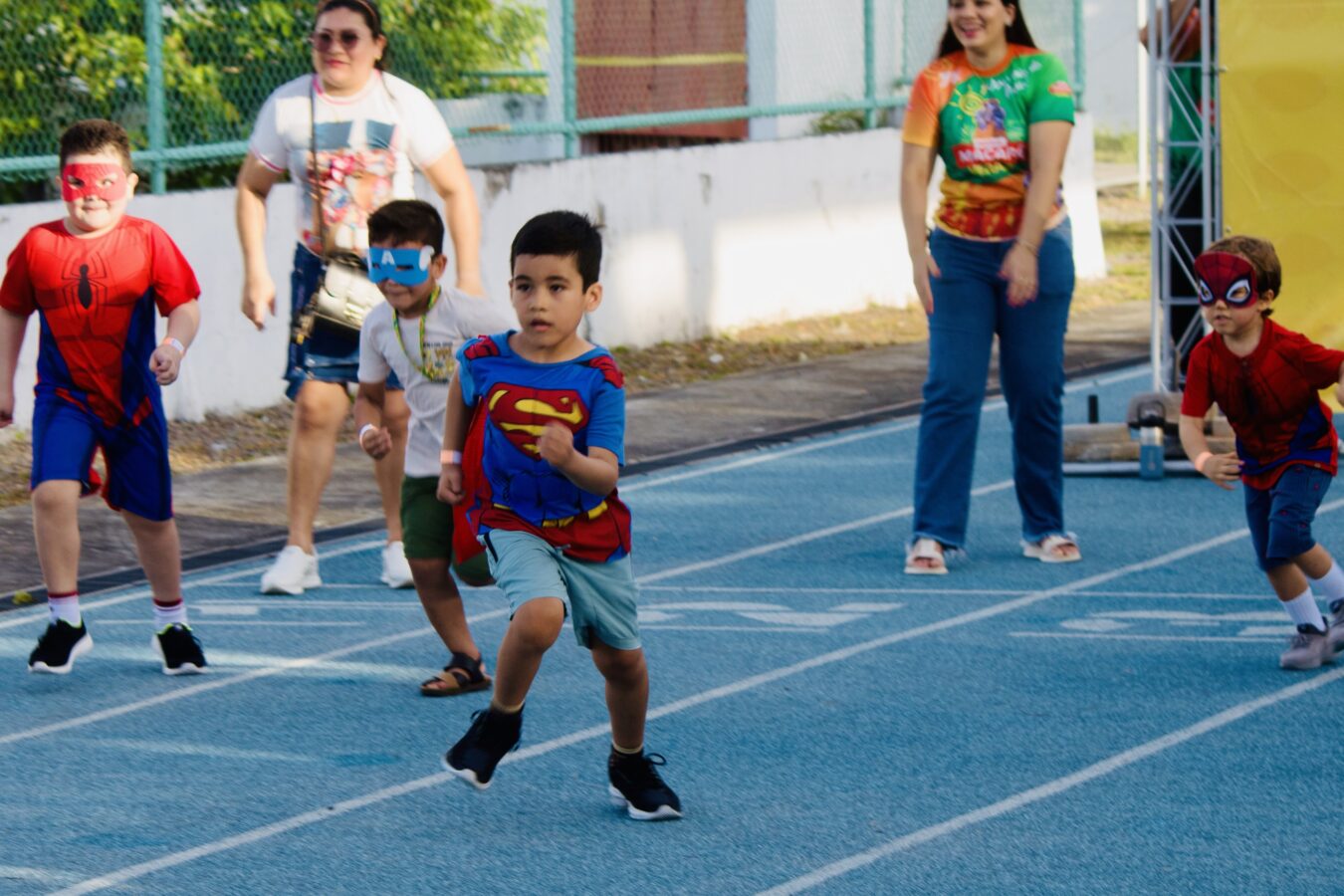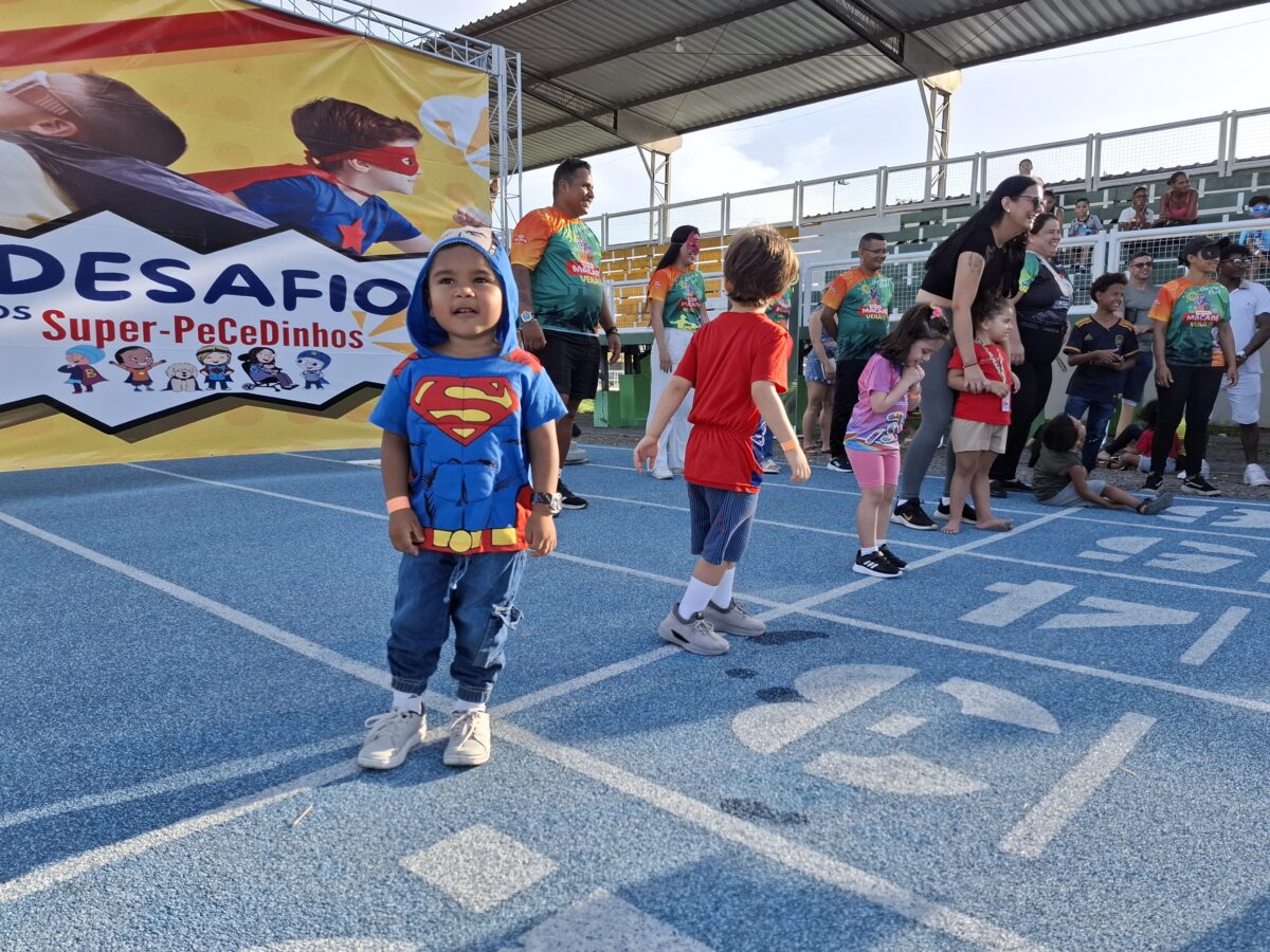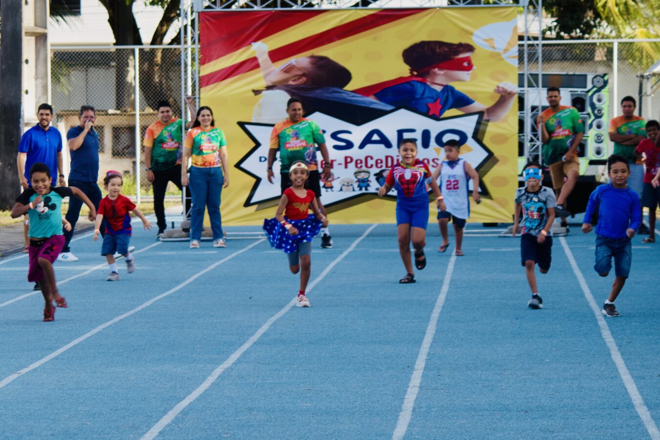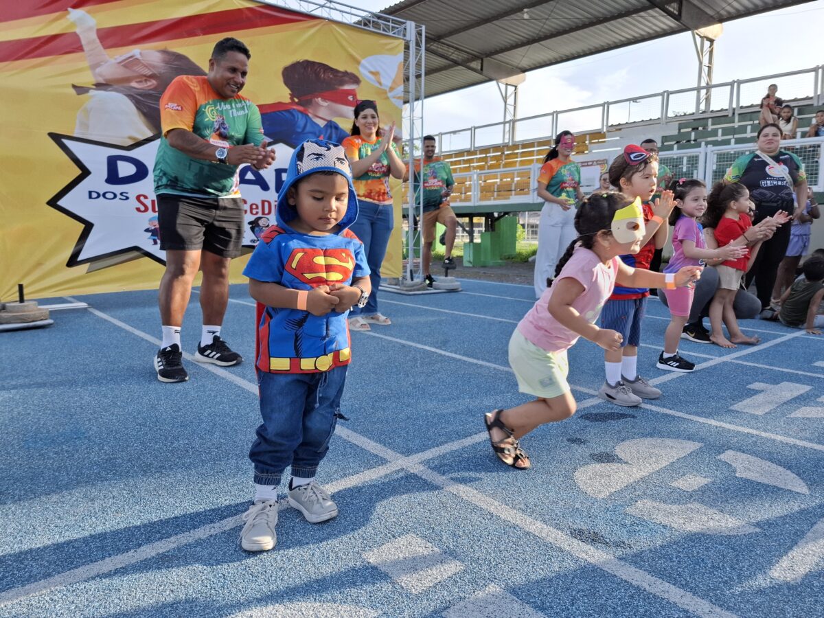A corrida lúdica de 100 metros teve como tema os super-heróis, e os pequenos atletas mostraram que a força verdadeira vem do coração.