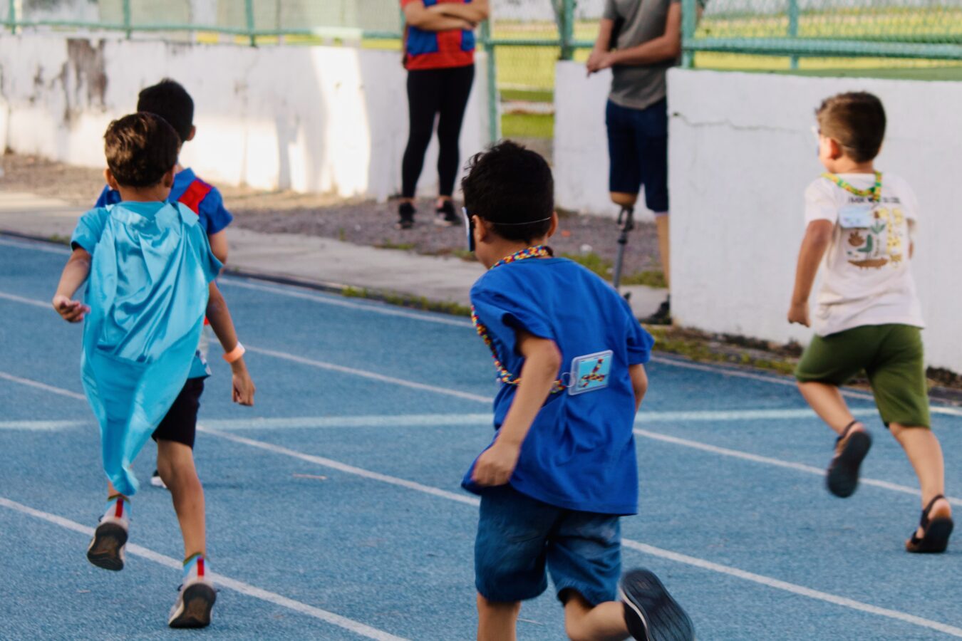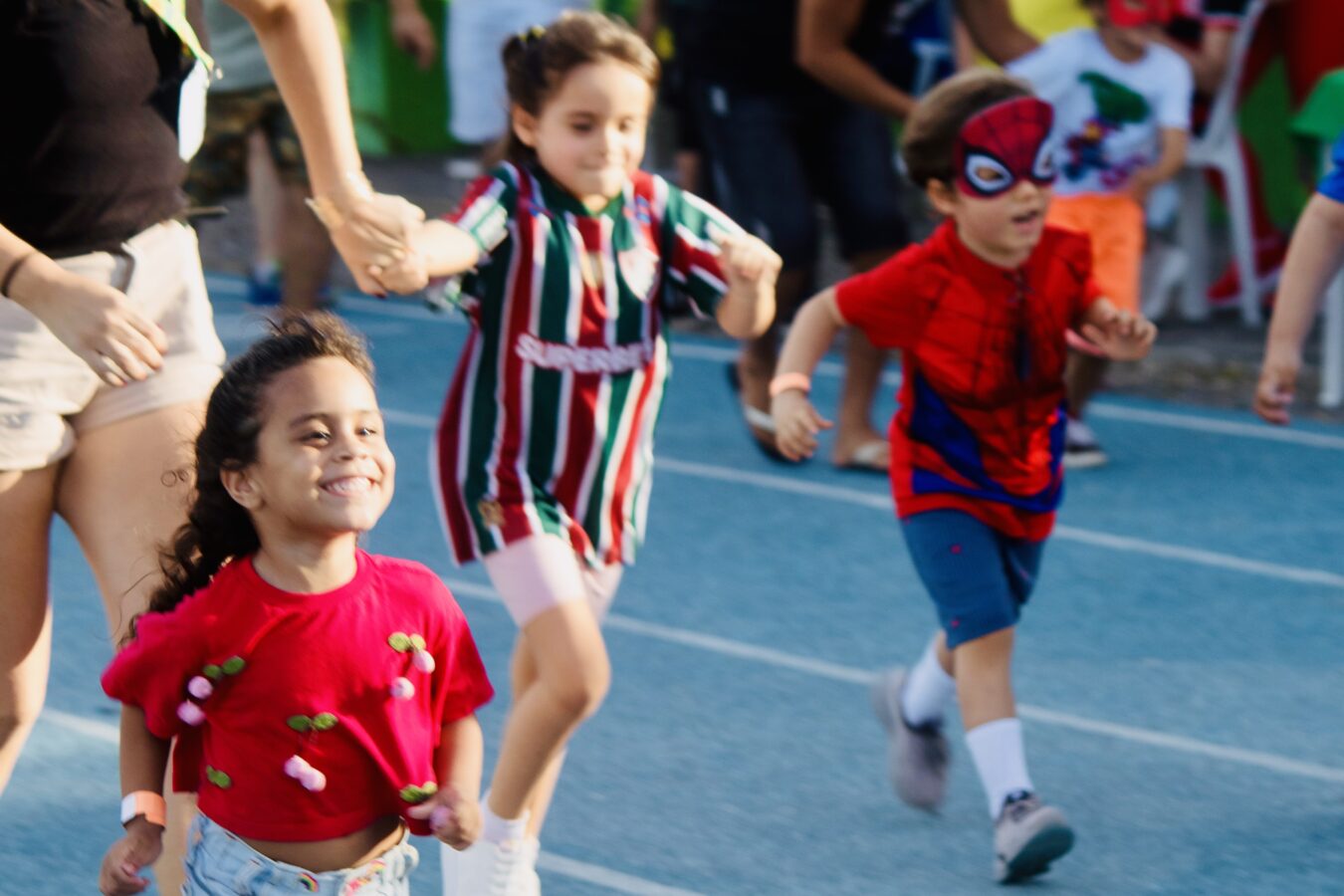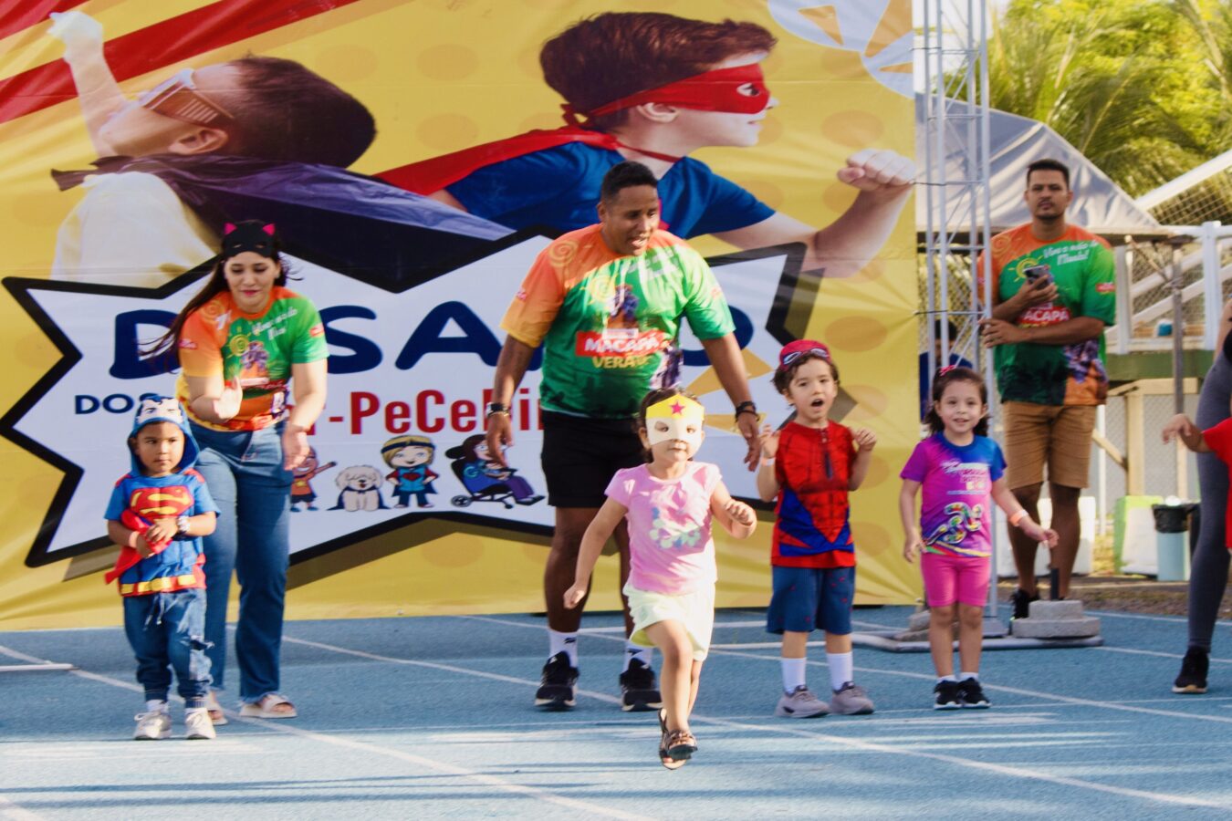 A corrida lúdica de 100 metros teve como tema os super-heróis, e os pequenos atletas mostraram que a força verdadeira vem do coração.