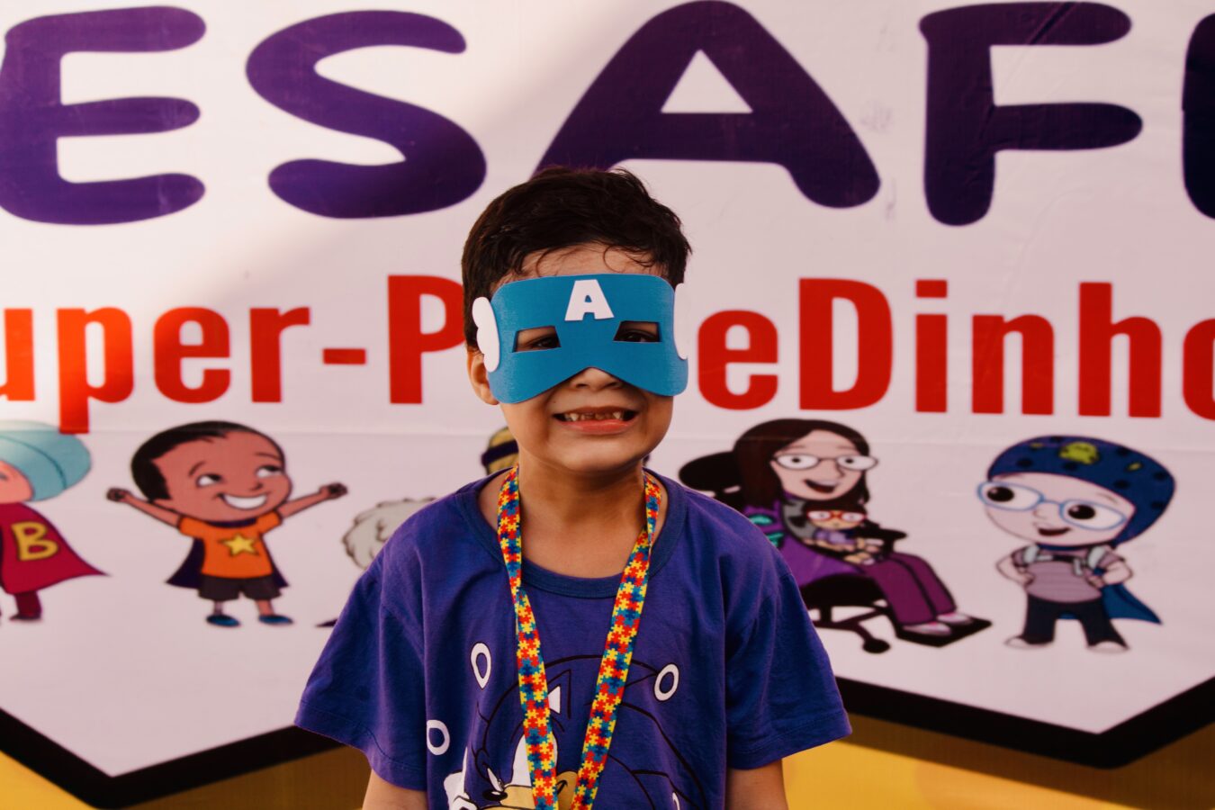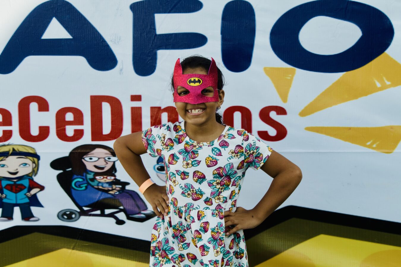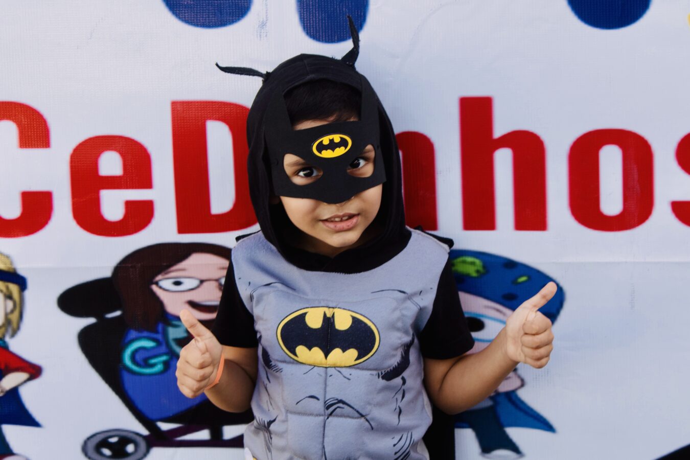 Julia, com máscara de Mulher-Gato, também compartilha sua alegria: “Eu gosto muito de correr, brincar e fazer tudo que uma criança faz. Aqui é muito divertido”, compartilhou.
