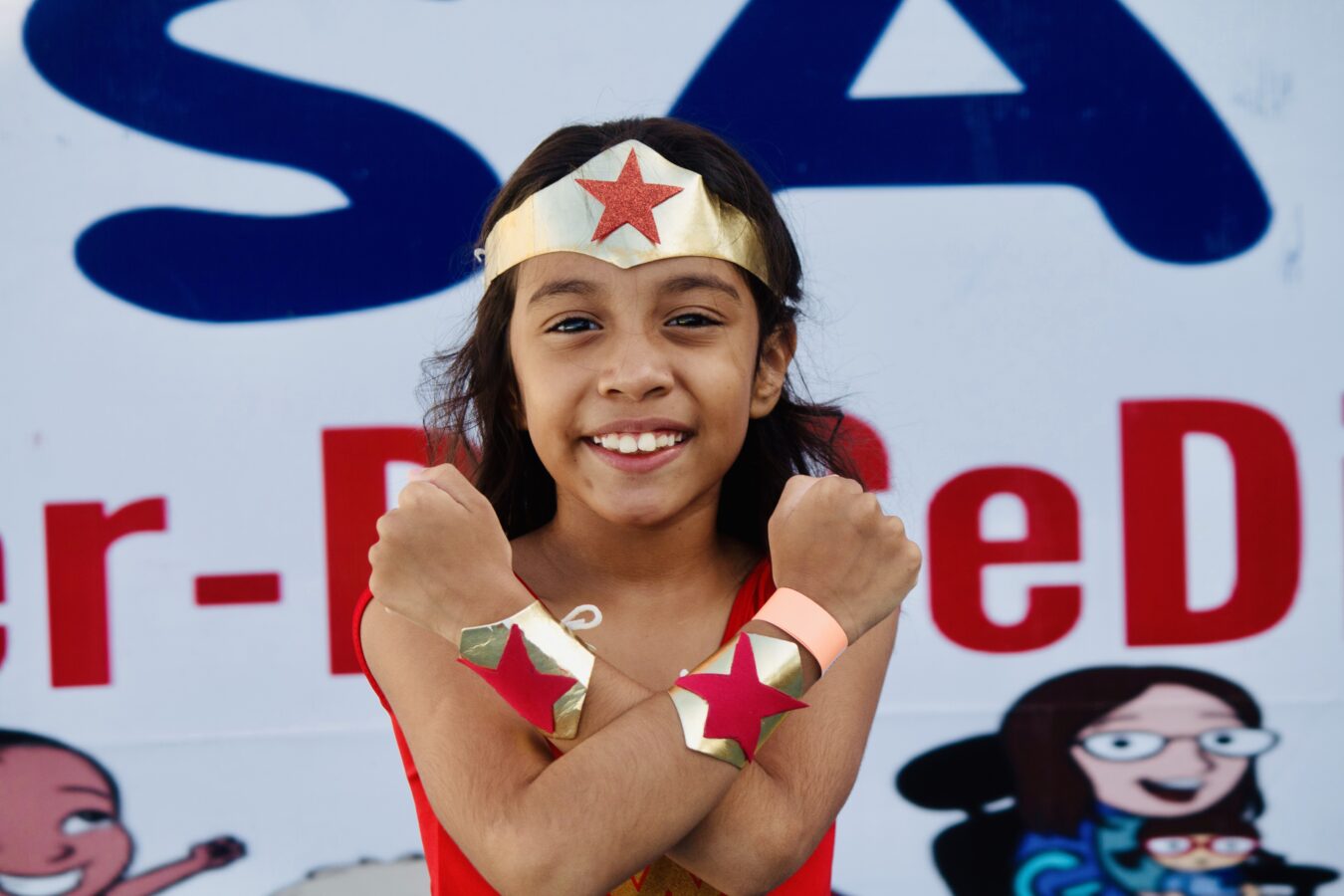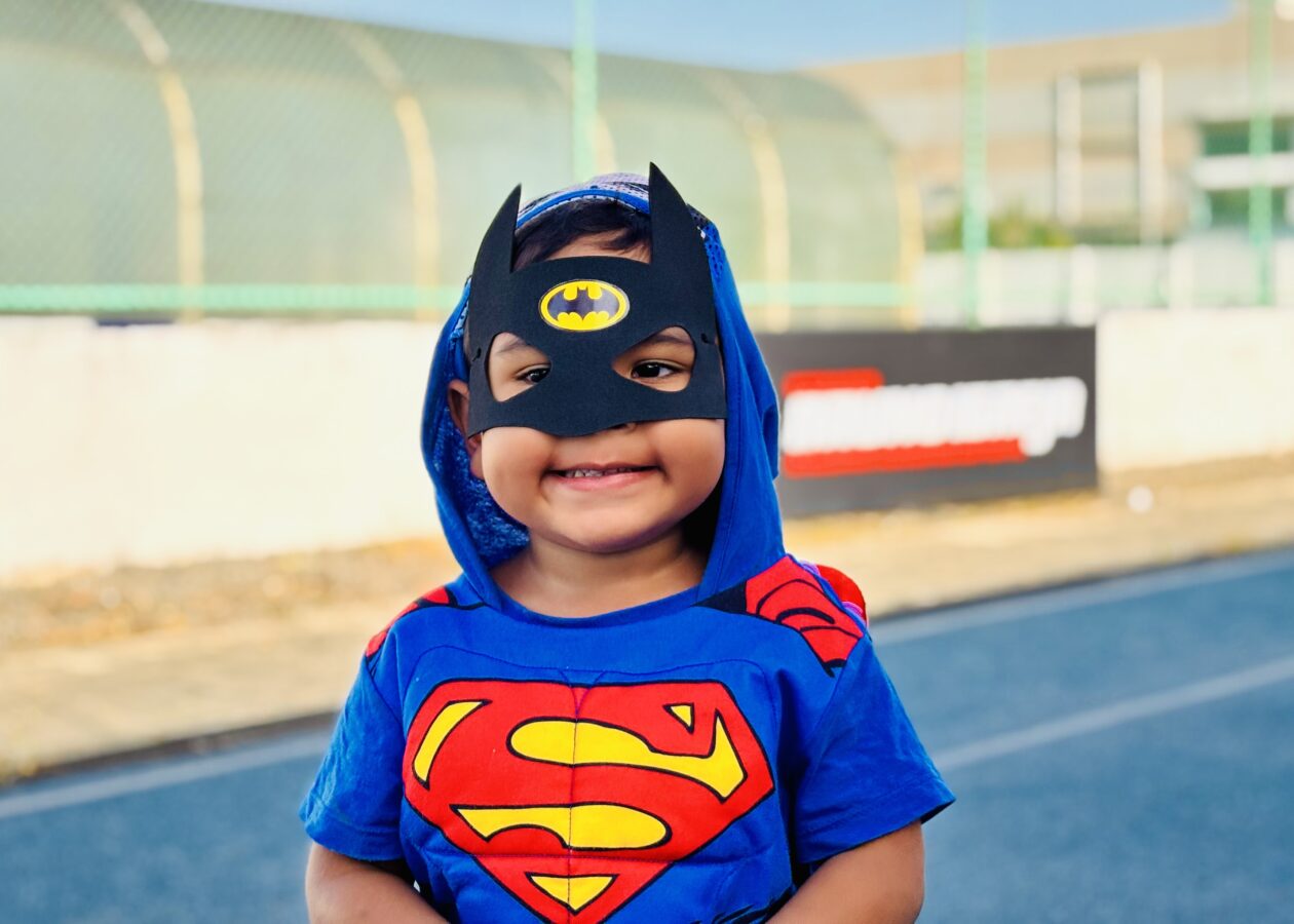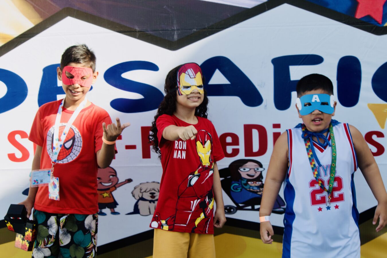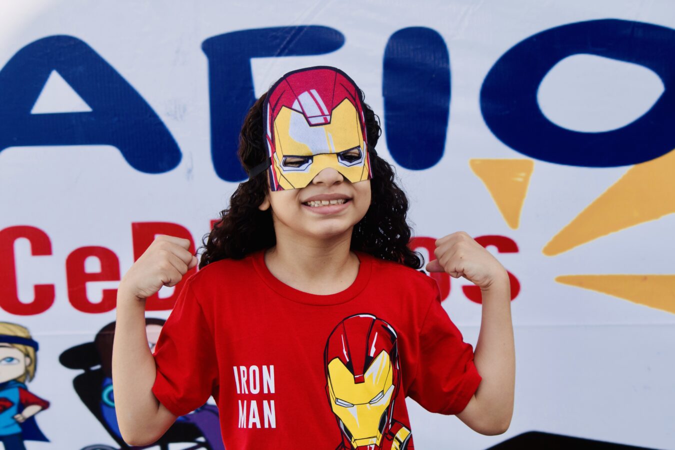 Julia, com máscara de Mulher-Gato, também compartilha sua alegria: “Eu gosto muito de correr, brincar e fazer tudo que uma criança faz. Aqui é muito divertido”, compartilhou.