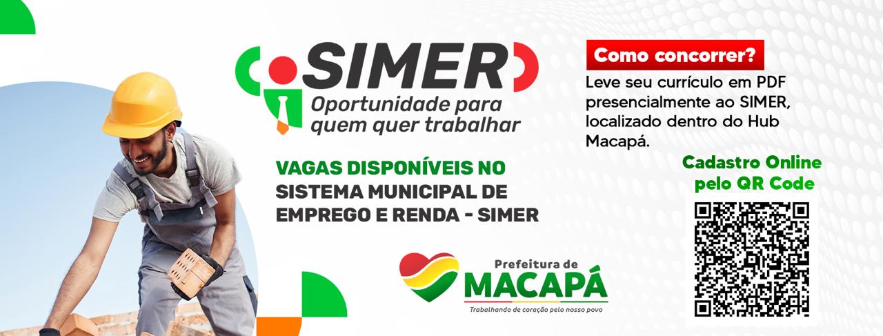A Prefeitura de Macapá, por meio do Sistema Municipal de Emprego e Renda (Simer), abriu 14 vagas de emprego para os cargos de vendedor externo, vendedor, pedreiro, carpinteiro, servente e analista de Recursos Humanos. Os interessados devem comparecer presencialmente à sede do Simer, na Avenida Padre Júlio Maria Lombardi, nº 1614, no Centro de Macapá, …