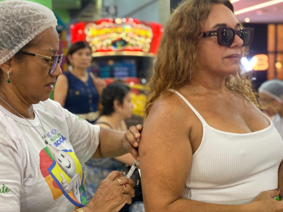 A campanha tem como foco atingir principalmente quem está com o cartão de vacinação desatuzalido, oferecendo uma oportunidade prática para se imunizar fora do horário comercial. A professora Samaritana Albuquerque aproveitou o passeio ao shopping para realizar sua vacinação.